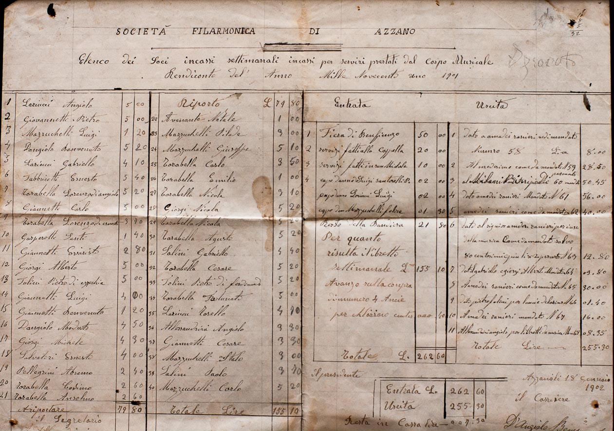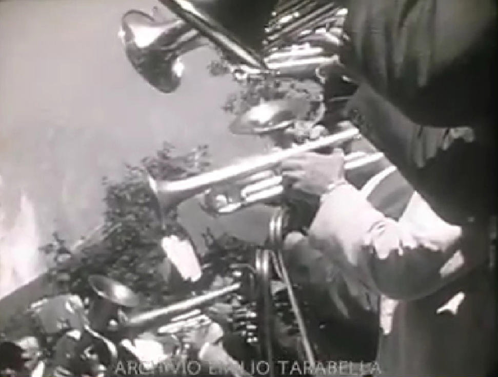 Anni '30. La Filarmonica al completo diretta dal Maestro Angelo Mazzucchelli detto "Angiolinello"